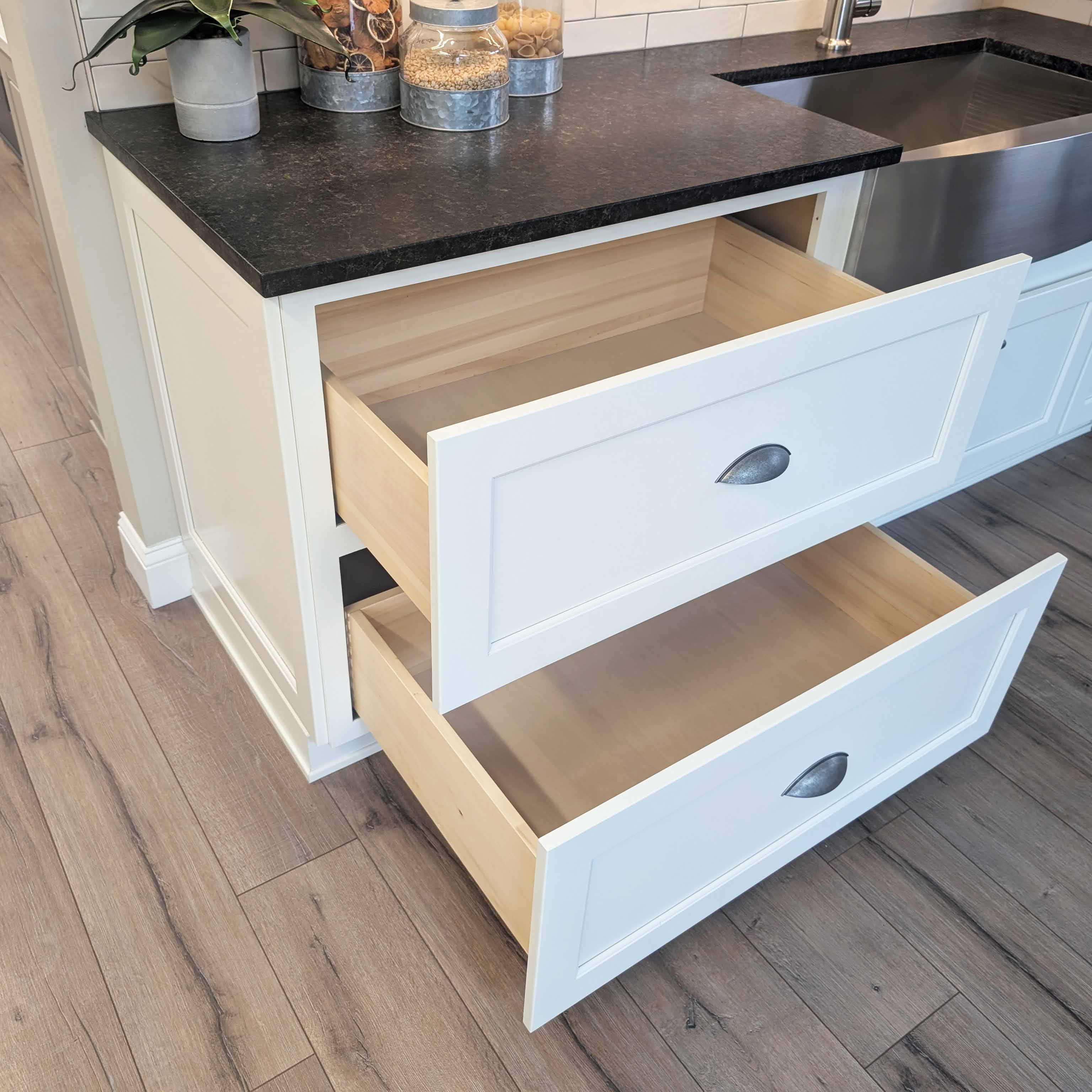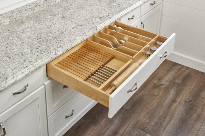 Explore options like pull-out trash and recycling bins, spice and cutlery inserts, tray dividers, soft-close rollouts and more. Your designer will guide you through the best choices for your layout, lifestyle, and workflow in the Kitchen.